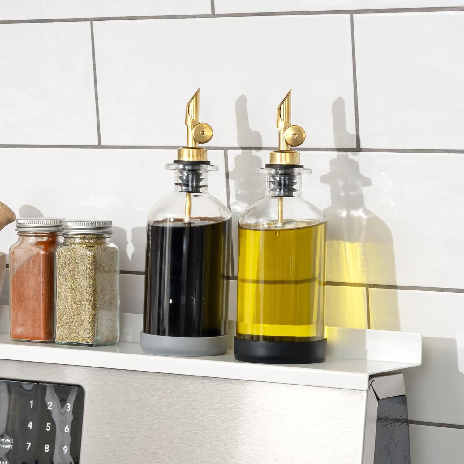 PREMIUM GLASS: Heavy, thick, premium glass bottles; designed to fit perfectly on your StoveShelf; dimensions: 2.75” x 8.25”